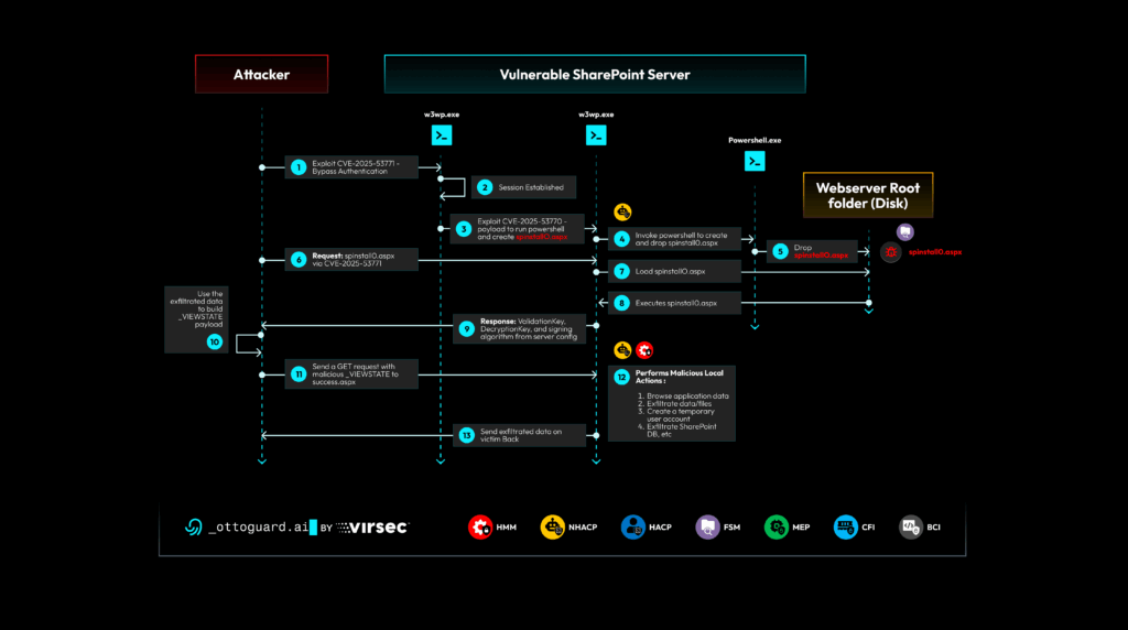 It is important to note that instead of using CVE-2025-53770 in step 3 above, another Remote Code Execution vulnerability disclosed in Microsoft’s August security update, CVE-2025-49712 (CVSS score: 8.8), which fixes yet another ViewState serialized data vulnerability, could have been used with equally devastating impact.